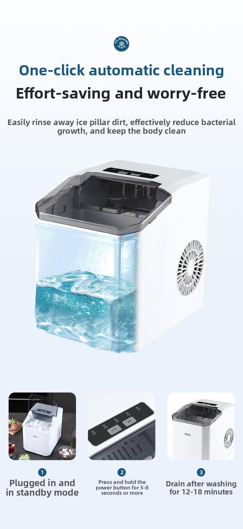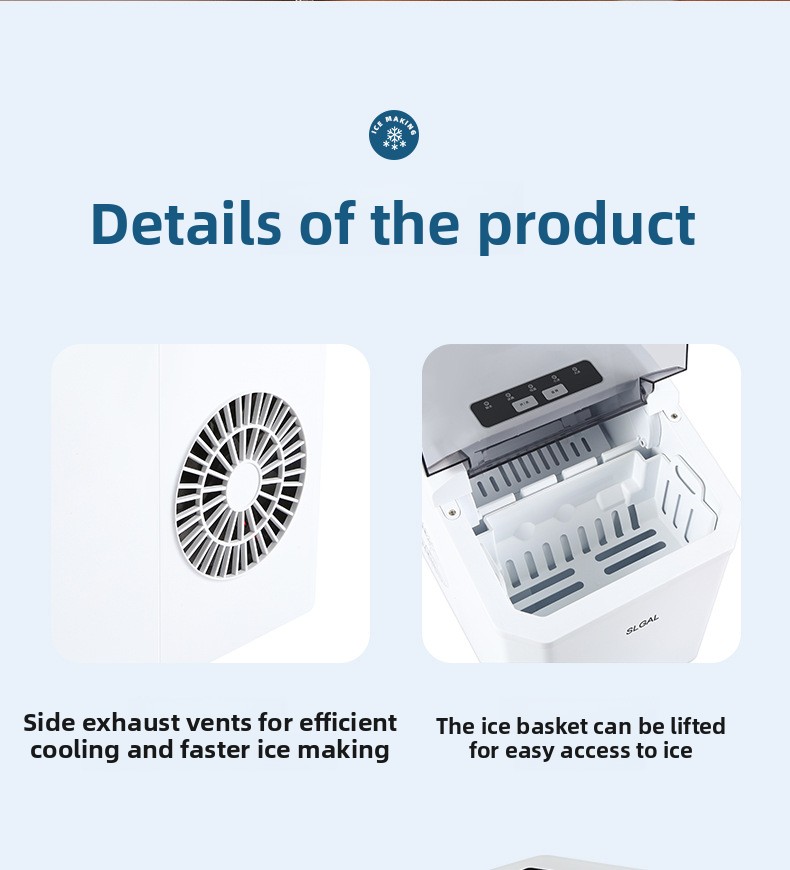 Automatic Ice Maker: Efficiently produces ice for home, office, or dormitory use.