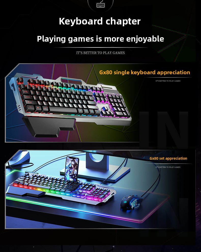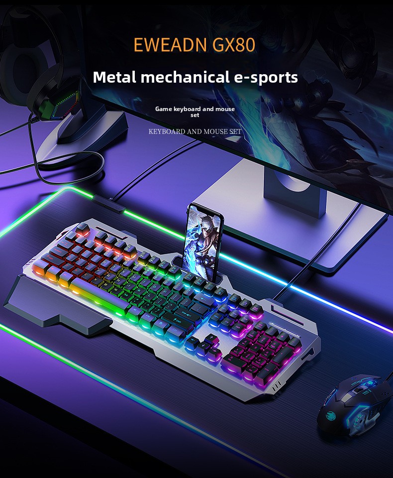 Gaming Setup: Includes keyboard, mouse, and headset designed for e-sports and gaming.